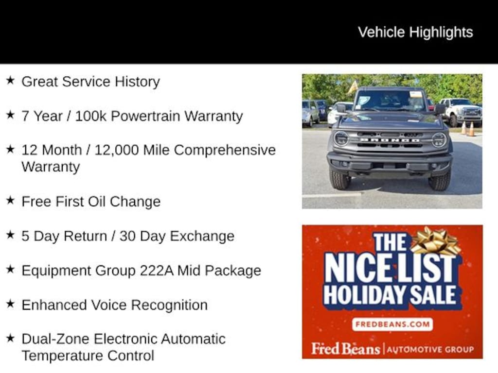 2022 Ford Bronco Big Bend 2.3L EcoBoost I-4 10-Speed Automatic 4WD 4D Sport Utility Carbonized Gray Metallic Great Service History, 7 Year / 100k Powertrain Warranty, 12 Month / 12,000 Mile Comprehensive Warranty, Free First Oil Change, 5 Day Return / 30 Day Exchange, 2-Door Intelligent Access w/Lock/Unlock, Ambient Footwell Lighting, Auto-Dimming Interior Rear-View Mirror, Connected Navigation, Dr & Pass Illuminated Sliding Visor Vanity Mirrors, Dual-Zone Electronic Automatic Temperature Control, Enhanced Voice Recognition, Equipment Group 222A Mid Package, Front Row Heated Seats, Power Outlet - Back Side of Center Floor Console, Rear Parking Sensors, Remote Start System.