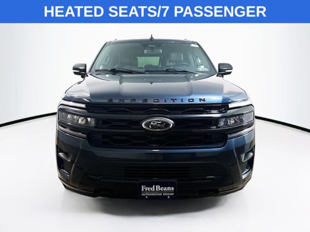 12 Speakers, 15.5" LCD Capacitive Touchscreen, 1st & 2nd Row Floor Mats w/Logo, 2nd Row Climate Control/Heated Seats Removal, 3.73 Axle Ratio, 360-Degree Camera w/Split View, 360-Degree Camera w/Trailer Reverse Guidance, 3rd row seats: split-bench, 4-Wheel Disc Brakes, ABS brakes, Active Park Assist 2.0, Adjustable pedals, Air Conditioning, Alloy wheels, AM/FM radio: SiriusXM with 360L, Auto-dimming door mirrors, Auto-dimming Rear-View mirror, Automatic temperature control, Black Headlamp and Fog Lamp Bezels, Black Limited Tailgate Badge, Black Roof Rack Side Rails, Body Color Door Handles, Brake assist, Bumpers: body-color, Compass, Driver door bin, Driver vanity mirror, Dual Exhaust System, Dual front impact airbags, Dual front side impact airbags, Ebony Black Power Deployable Running Boards, Ebony Black Tailgate Applique, Ebony Black Twin Spar Grille, Electronic Stability Control, Emergency communication system: SYNC 4 911 Assist, Enhanced Active Noise Control, Equipment Group 304A Stealth Performance Package, Expedition Lettering on Hood, Four wheel independent suspension, Front anti-roll bar, Front Bucket Seats, Front Center Armrest, Front dual zone A/C, Front reading lights, Garage door transmitter, Hands-Free Foot-Activated Feature Removal, Heated & Ventilated Leather Front Captain's Chairs, Heated door mirrors, Heated front seats, Heated steering wheel, Heated/Ventilated Lthr Front Captain's Chairs (A), Heavy-Duty Trailer Tow Package, Illuminated entry, Instrument Panel Cluster, Integrated Trailer Brake Controller, Leather steering wheel, LED Taillamp w/Black Bezels, Low tire pressure warning, Memory seat, Navigation system: Connected Navigation, Occupant sensing airbag, Outside temperature display, Overhead airbag, Overhead console, Passenger door bin, Passenger vanity mirror, Pedal memory, Power door mirrors, Power driver seat, Power Liftgate, Power moonroof, Power passenger seat, Power steering, Power windows, Power-Folding Sideview Mirrors w/Autofold, Pro Trailer Backup Assist, Radio data system, Radio: B&O Sound System by Bang & Olufsen, Radio: B&O Unleashed Sound System by Bang & Olufsen, Rear air conditioning, Rear anti-roll bar, Rear reading lights, Rear window defroster, Reclining 3rd row seat, Red Brake Calipers, Remote keyless entry, Reverse Brake Assist, SiriusXM w/360L, Speed-sensing steering, Split folding rear seat, Spoiler, Sport Center Console, Sport-Tuned Suspension, Stealth Performance Edition Package, Stealth Signature Lighting Removal, Steering wheel memory, Steering wheel mounted audio controls, SYNC 4 w/Enhanced Voice Recognition, SYNC 4A w/Enhanced Voice Recognition, Tachometer, Telescoping steering wheel, Tilt steering wheel, Traction control, Trip computer, Turn signal indicator mirrors, Ventilated front seats, Voltmeter, Wheels: 22" Premium Black-Painted Aluminum.