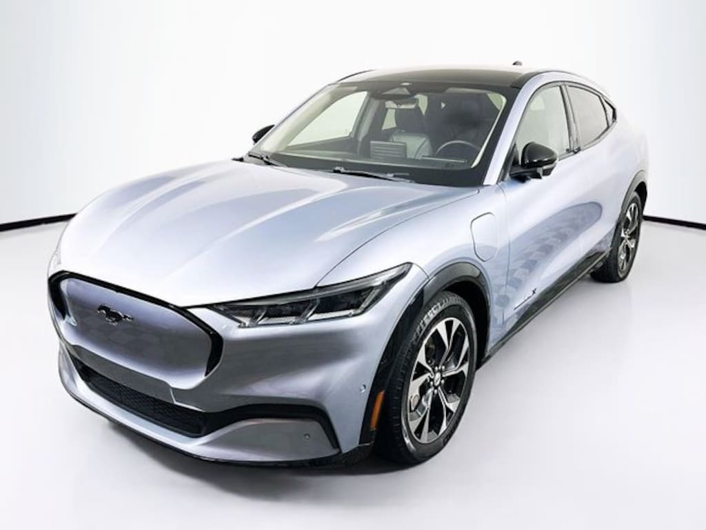 2022 Ford Mustang Mach-E Premium 330a Extended Battery Dual Electric Motor Single-Speed Automatic AWD 4D Sport Utility Iced Blue Silver Metallic 7 Year / 100k Powertrain Warranty, 12 Month / 12,000 Mile Comprehensive Warranty, Active Park Assist Prep Kit, AM/FM radio: SiriusXM with 360L, Apple CarPlay/Android Auto, Automatic temperature control, Cargo Area Protector, Equipment Group 300A, Front & Rear Floor Liners, Front dual zone A/C, Garage door transmitter, Heated door mirrors, Heated Perforated ActiveX Bucket Seats, Heated steering wheel, Interior Protection Package (Pre-Installed), Memory seat, Navigation system: Connected Navigation, Power door mirrors, Power driver seat, Power Liftgate, Power passenger seat, Power windows, Rain sensing wipers, Rear window defroster, Rear window wiper, Remote keyless entry, Speed control, SYNC 4A w/Enhanced Voice Recognition, Tilt steering wheel, Turn signal indicator mirrors, Wheels: 19" Machined-Face Aluminum. 97/84 City/Highway MPG