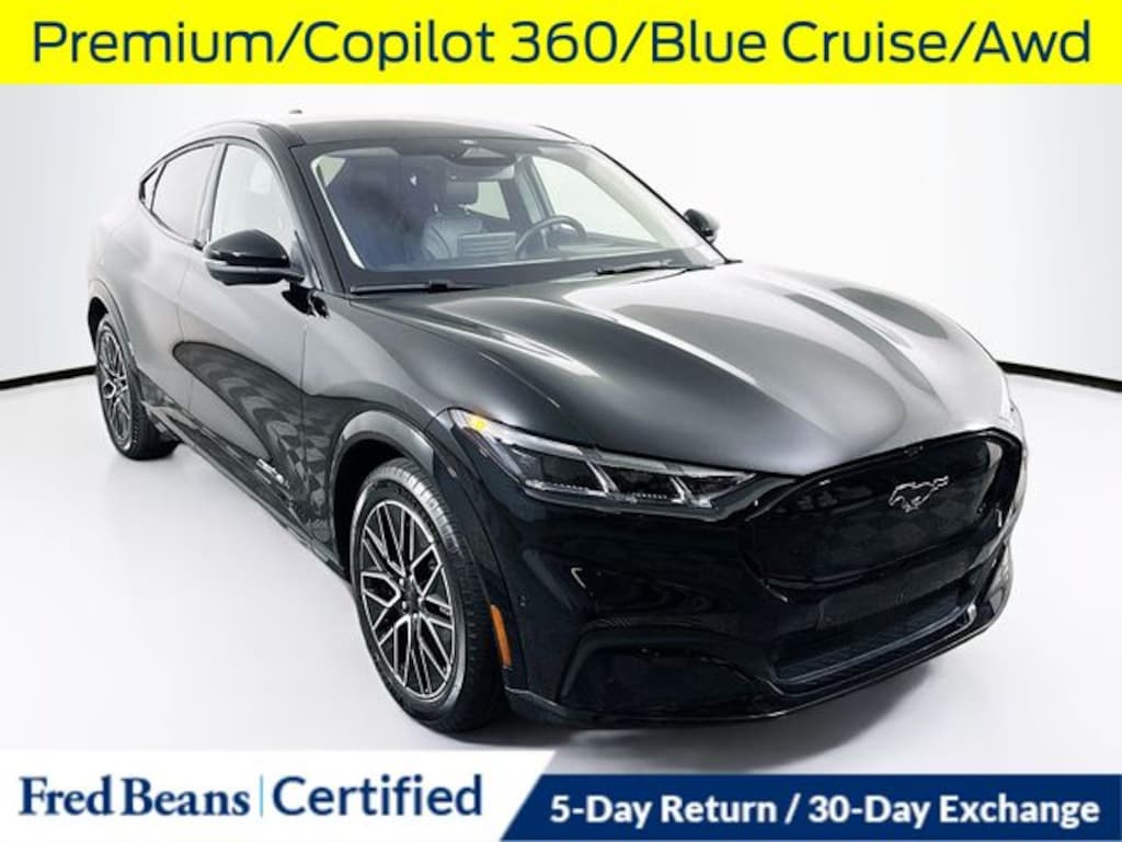 2024 Ford Mustang Mach-E Premium Electric Motor Single-Speed Automatic AWD 4D Sport Utility Shadow Black 7 Year / 100k Powertrain Warranty, 12 Month / 12,000 Mile Comprehensive Warranty, 1st & 2nd Row Floor Liners w/o Carpet Mats, AM/FM radio: SiriusXM with 360L, Apple CarPlay/Android Auto, Automatic temperature control, BlueCruise Equipped (3-Year Plan), Cargo Area Cover, Cargo Floor Liner, Equipment Group 300A, Exterior Parking Camera Rear, Front dual zone A/C, Heated door mirrors, Heated steering wheel, Interior Protection Package (Pre-Installed), Memory seat, Mobile Power Cord (120V/240V), Panoramic Fixed-Glass Roof, Power door mirrors, Power driver seat, Power Liftgate, Power windows, Rain sensing wipers, Rear window defroster, Rear window wiper, Remote keyless entry, Speed control, Turn signal indicator mirrors, Wheels: 19" Bright Machined-Face Aluminum. 103/94 City/Highway MPG
