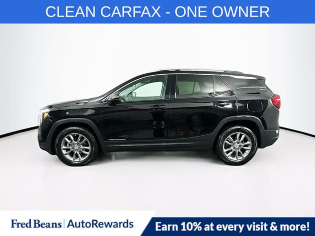 This Terrain SLT is powered by a 1.5L DOHC engine mated to a 9-Speed Automatic transmission, delivering a smooth and efficient driving experience with an impressive 25 city / 28 highway MPG. The available All-Wheel-Drive system ensures confident handling in a variety of road conditions.