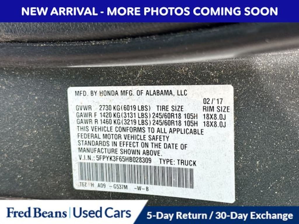 Recent Arrival! 2017 Honda Ridgeline RTL-T 3.5L V6 SOHC i-VTEC 24V 6-Speed Automatic AWD 4D Crew Cab Gray Triton Certified Classic Vehicle, 3 Month / 4,000 Mile Comprehensive Warranty, 5 Day Return / 30 Day Exchange, Auto Reward Program, Leather, AM/FM radio: SiriusXM, Apple CarPlay/Android Auto, Auto-dimming Rear-View mirror, Automatic temperature control, Bluetooth® Hands-Free Link, Exterior Parking Camera Rear, Front dual zone A/C, Fully automatic headlights, Garage door transmitter: HomeLink, Heated door mirrors, Heated Front Bucket Seats, Heated front seats, Honda Satellite-Linked Navigation System, Leather Seat Trim, Navigation system: Honda Satellite-Linked Navigation System, Power door mirrors, Power driver seat, Power passenger seat, Radio: AM/FM/MP3 w/Navigation System, Remote keyless entry, SIRIUS XM Radio, Steering wheel mounted audio controls.