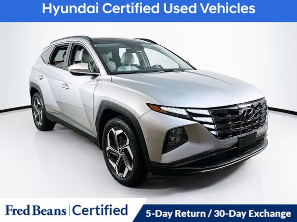 Recent Arrival! 2023 Hyundai Tucson Limited 2.5L I4 DGI DOHC 16V LEV3-ULEV70 187hp 8-Speed Automatic with SHIFTRONIC AWD 4D Sport Utility Shimmering Silver Factory Certified Vehicle, Free First Oil Change, 5 Day Return / 30 Day Exchange, Auto Reward Program, 5 Year / 60,000 miles comprehensive OISD, 10 Year / 100,000 miles powertrain OISD 10 Year / 100,000 miles powertrain OISD, AWD, ABS brakes, Apple CarPlay & Android Auto, Brake assist, Electronic Stability Control, Emergency communication system: Blue Link Connected Car Service (3-year complimentary subscription), Front dual zone A/C, Heated & Ventilated Front Bucket Seats, Heated rear seats, Memory seat, Navigation System, Option Group 01, Power driver seat, Power Liftgate, Power moonroof, Power steering, Power windows, Rear anti-roll bar, Remote keyless entry, Roof rack: rails only, Steering wheel mounted audio controls.