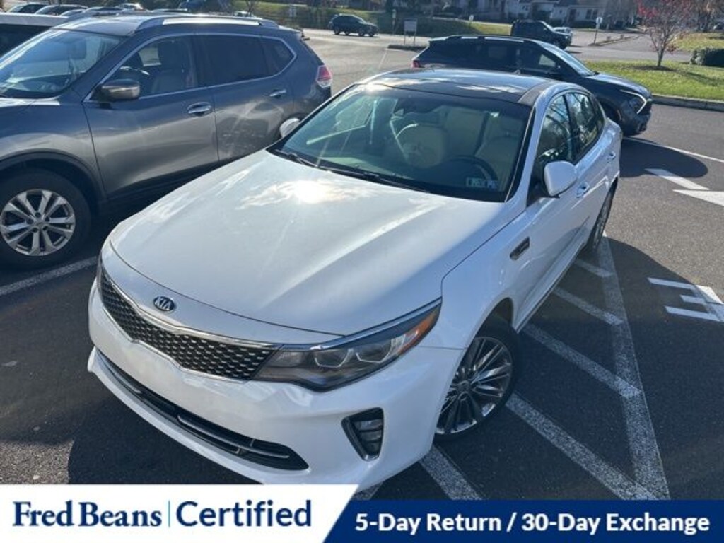Recent Arrival! 2018 Kia Optima SX Turbo SX 2.0L I4 DGI DOHC Turbocharged 6-Speed Automatic with Sportmatic FWD 4D Sedan Snow White Pearl Local Trade, Great Service History, Triton Certified Classic Vehicle, 3 Month / 4,000 Mile Comprehensive Warranty, Free First Oil Change, 5 Day Return / 30 Day Exchange, Auto Rewards Program, Black Leather, Advanced Smart Cruise Control, Apple CarPlay & Android Auto, Autonomous Emergency Braking (AEB), Chrome Accent Front/Rear Bumpers, Chrome Accent Side Sills, Exterior Parking Camera Rear, Front Collision Warning System, Front dual zone A/C, Heated & Ventilated Front Bucket Seats, Heated Leather-Wrapped D-Shaped Steering Wheel, Heated Rear Outboard Seats, High Beam Assist, Lane Departure Warning System, Leather Shift Knob, Leather steering wheel, Limited Package (Ivory), Memory seat, Nappa Leather Seat Trim, Navigation System, Power driver seat, Power moonroof, Power passenger seat, Premium Black Suede Headliner & Pillar Covers, Radio: AM/FM/MP3/SiriusXM Premium Audio System, Rear Side Window Sun Shades, Remote keyless entry, Steering wheel mounted audio controls, Surround View Monitor, Technology Package, Turn signal indicator mirrors, Wheels: 7.5J x 18" Alloy w/Chrome Machine Finish.