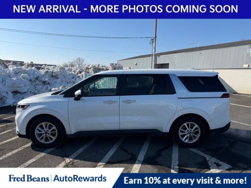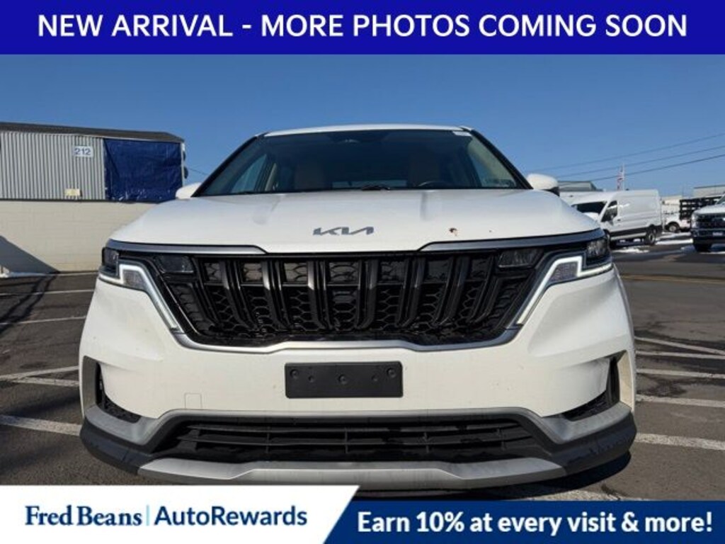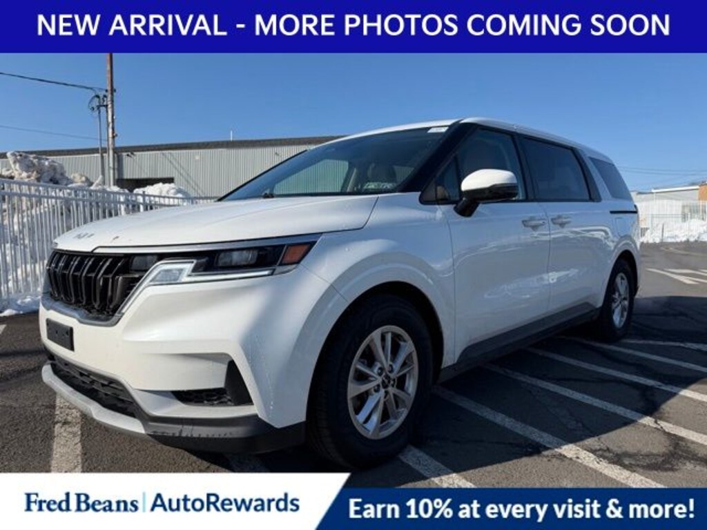 Recent Arrival! 2023 Kia Carnival LX V6 8-Speed Automatic FWD 4D Passenger Van Snow White Pearl Kia Certified Pre-Owned Certified, 3.51 Axle Ratio, 3rd row seats: split-bench, 4-Wheel Disc Brakes, 6 Speakers, ABS brakes, Air Conditioning, Alloy wheels, AM/FM radio, Apple CarPlay & Android Auto, Auto High-beam Headlights, Brake assist, Bumpers: body-color, Cargo Mat, Cargo Net, Cloth Seat Trim, Delay-off headlights, Driver door bin, Driver vanity mirror, Dual front impact airbags, Dual front side impact airbags, Electronic Stability Control, Four wheel independent suspension, Front anti-roll bar, Front Bucket Seats, Front Center Armrest, Front reading lights, Fully automatic headlights, Heated door mirrors, Illuminated entry, Knee airbag, Leather Shift Knob, Low tire pressure warning, Occupant sensing airbag, Outside temperature display, Overhead airbag, Overhead console, Panic alarm, Passenger door bin, Passenger vanity mirror, Power door mirrors, Power steering, Power windows, Radio: AM/FM Audio System, Rear air conditioning, Rear anti-roll bar, Rear reading lights, Rear window defroster, Rear window wiper, Reclining 3rd row seat, Remote keyless entry, Security system, Speed control, Speed-sensing steering, Split folding rear seat, Spoiler, Steering wheel mounted audio controls, Tachometer, Telescoping steering wheel, Tilt steering wheel, Traction control, Trip computer, Turn signal indicator mirrors, Variably intermittent wipers, Wheel Locks, Wheels: 6.5J x 17" Silver Painted Alloy.