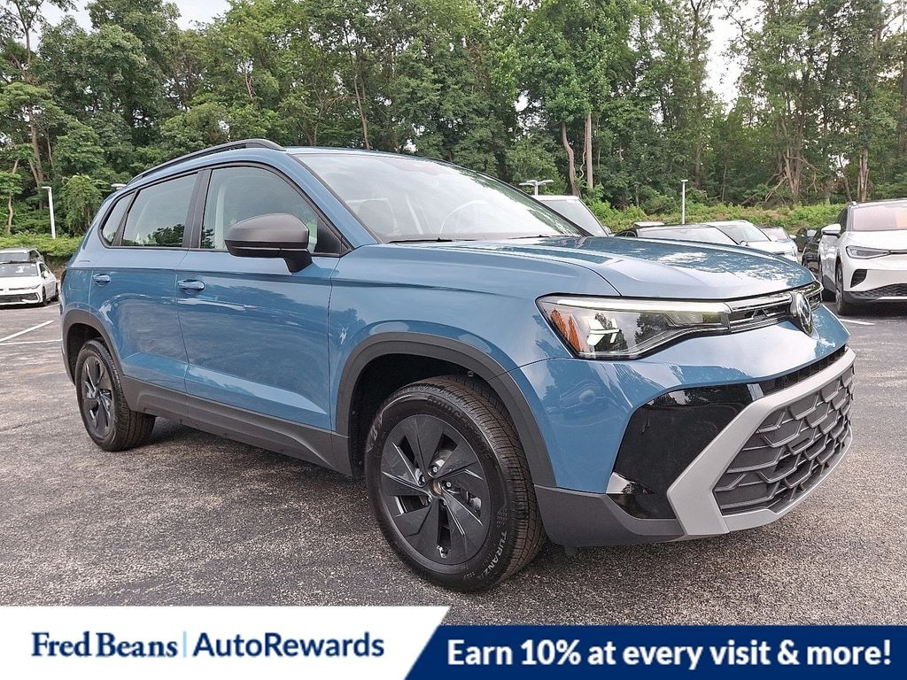 2025 Volkswagen Taos 1.5T S 1.5T S 1.5L I4 Turbocharged DOHC 16V LEV3-SULEV30 174hp 8-Speed Automatic with Tiptronic FWD Blue Price includes: $500 - Retail Customer Bonus. Exp. 11/03/2025