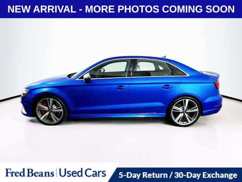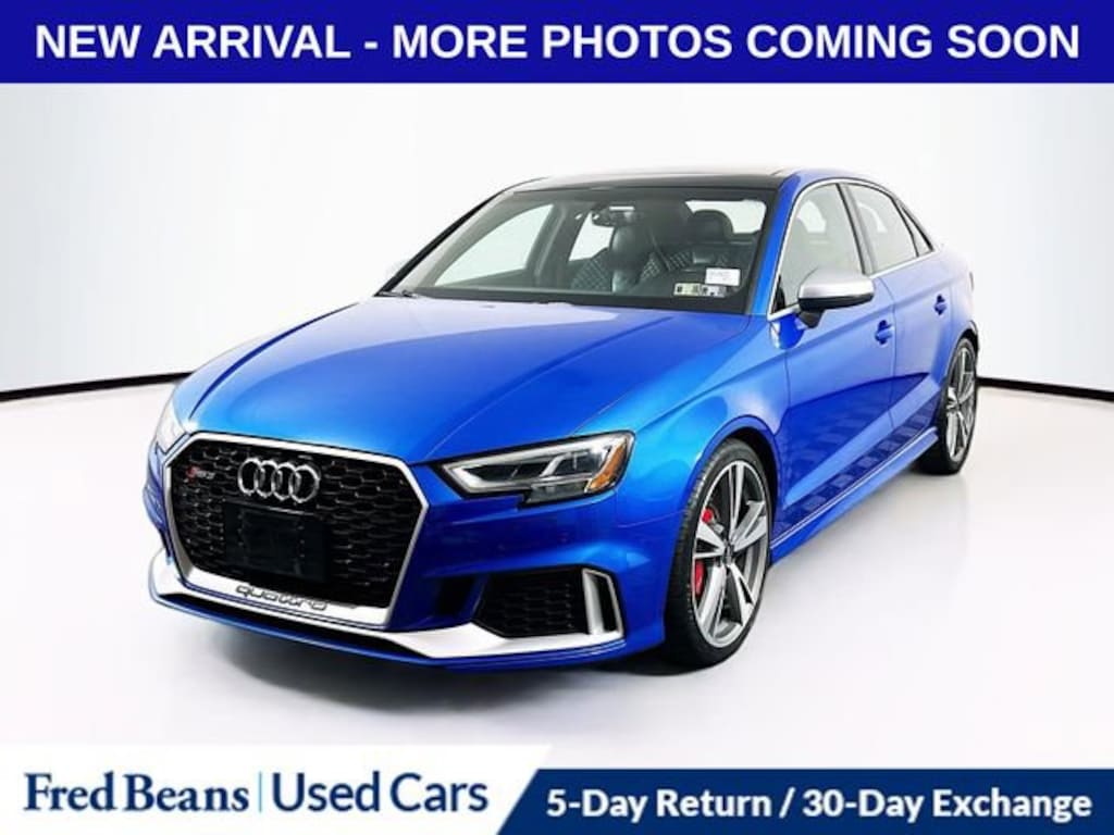 Clean CARFAX.Recent Arrival! 2017 Audi RS 3 2.5T quattro 2.5L I5 Turbocharged DOHC 20V ULEV II 400hp 7-Speed Automatic S tronic quattro 4D Sedan BlueFor better peace of mind all our used vehicles have a 127-point inspection and come with a 5-day return, 30-day exchange (As-Is vehicles are excluded). Our exclusive Auto Rewards Program provides better value with Free First Oil change, Free Pa State Safety inspections, discounts for local merchants and more. Plus, you can earn up to $2000 towards your next vehicle just by servicing with Fred Beans! As Fred Beans always says, our used cars are better because our reputation depends on it.Although every reasonable effort has been made to ensure the accuracy of the information contained on this site, absolute accuracy cannot be guaranteed. This site, and all information and materials appearing on it, are presented to the user as is without warranty of any kind, either express or implied. All vehicles are subject to prior sale. Price does not include applicable tax, title, license, processing and/or documentation fees. Vehicles shown at different locations are not currently in our inventory (Not in Stock) but can be made available to you at our location within a reasonable date from the time of your request, not to exceed one week. Residency restrictions may apply.