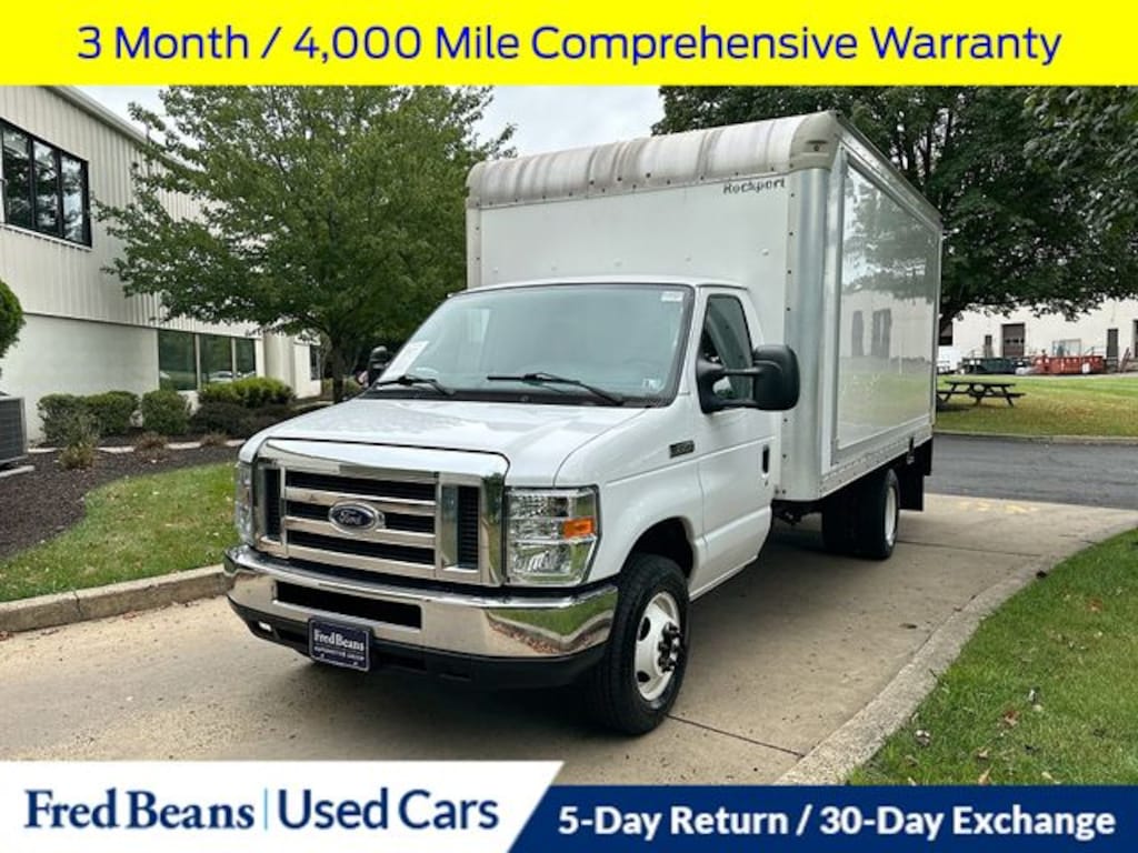 2017 Ford E-350SD Base Cutaway Triton V10 6.8L EFI 6-Speed Automatic Electronic with Overdrive RWD Oxford White Local Trade, 3 Month / 4,000 Mile Comprehensive Warranty, Ford Blue Advantage Certified, Chrome Grille, Dual Sealed-Beam w/Fixed Lens Headlamps, Front Chrome Bumper w/Black Lower Fascia, High Series Exterior Upgrade Package, Order Code 780A, Power Windows & Locks Group, Vinyl Seat Trim.