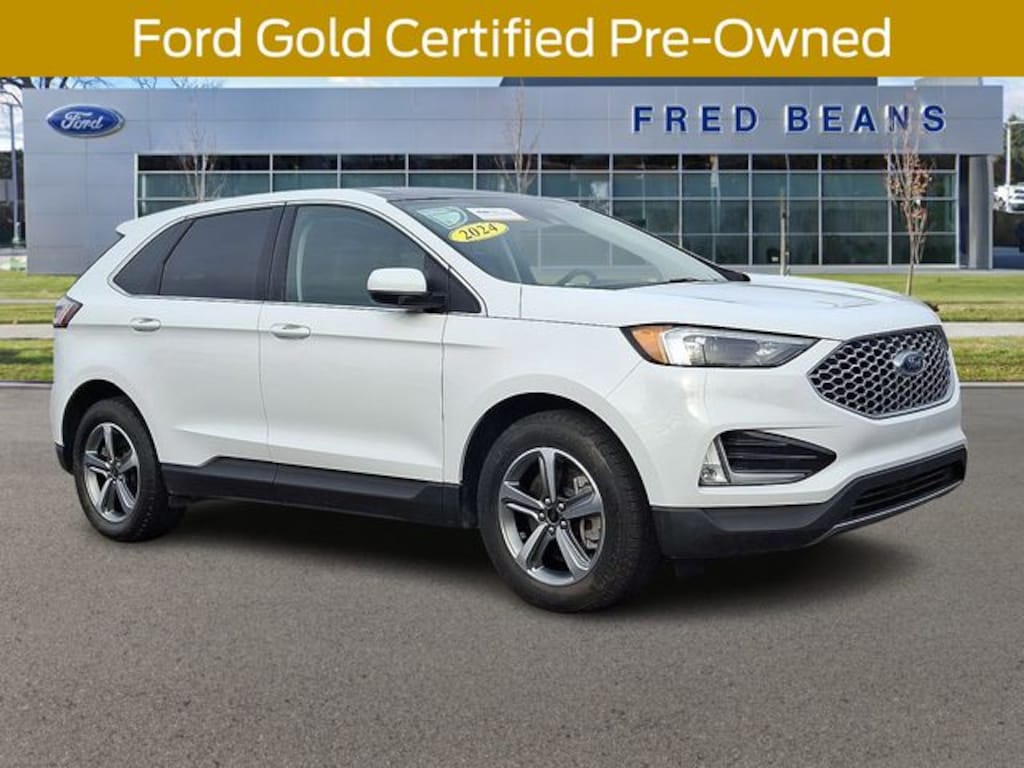 2024 Ford Edge SEL EcoBoost 2.0L I4 GTDi DOHC Turbocharged VCT 8-Speed Automatic 4D Sport Utility Oxford White Factory Certified Vehicle, Free First Oil Change, 5 Day Return / 30 Day Exchange, Auto Reward Program, Edge SEL, 4D Sport Utility, EcoBoost 2.0L I4 GTDi DOHC Turbocharged VCT, 8-Speed Automatic, AWD, Oxford White, Ebony w/ActiveX Trimmed Heated Bucket Seats, 110V/150W AC Power Outlet, Convenience Package, Fog Lamps w/Iconic Silver Bezel, Panoramic Vista Roof, Perimeter Alarm, Power Liftgate, Remote Start System, Universal Garage Door Opener (UGDO), Wireless Charging Pad. 21/28 City/Highway MPG