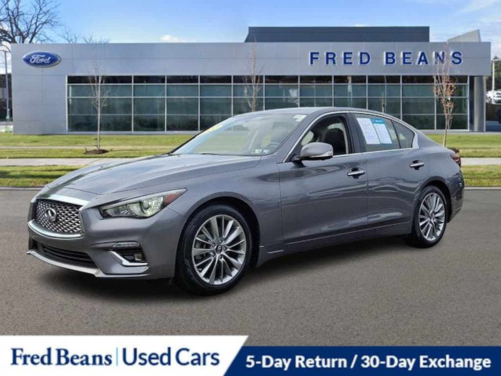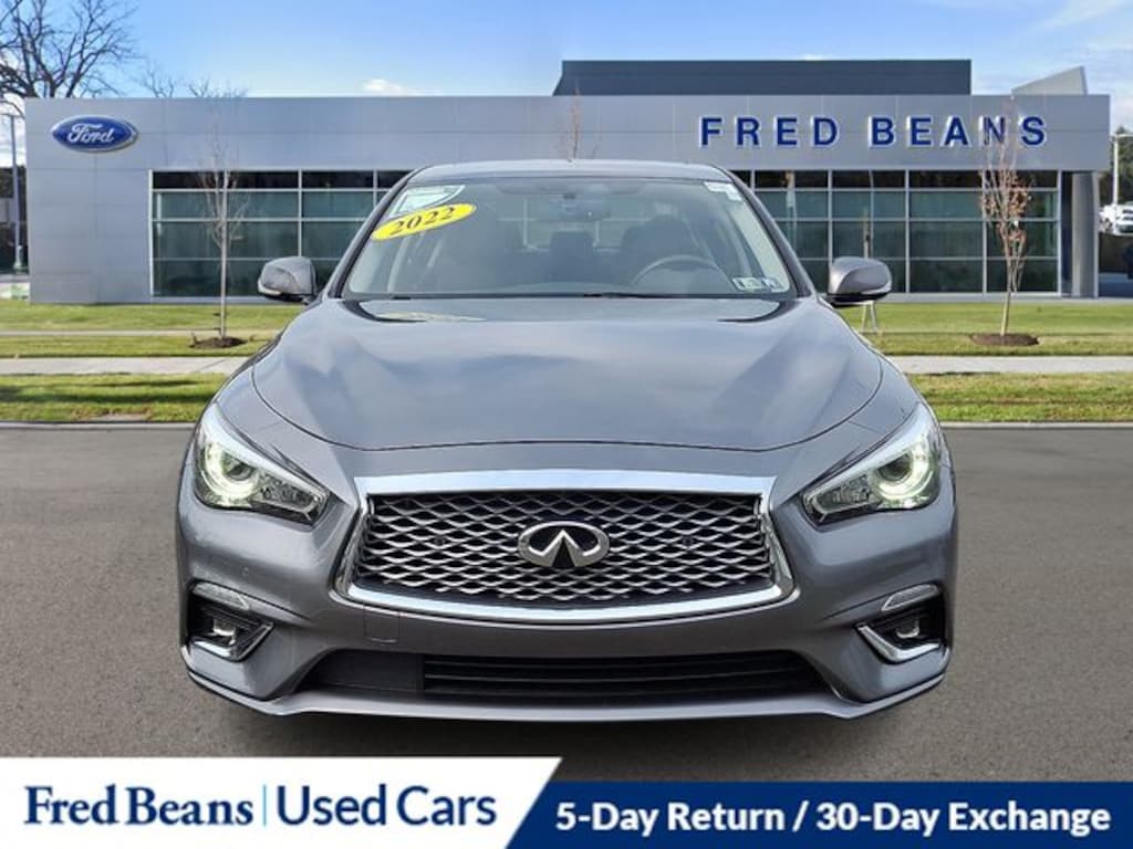 2022 INFINITI Q50 LUXE 3.0L V6 7-Speed Automatic with Overdrive AWD 4D Sedan Graphite Shadow Local Trade, Great Service History, Triton Certified Vehicle, 7 Year / 100k Powertrain Warranty, 12 Month /12,000 Mile Comprehensive Warranty, 12 Month / 12,000 Mile Comprehensive Warranty, Q50 LUXE, 4D Sedan, 3.0L V6, 7-Speed Automatic with Overdrive, AWD, Graphite Shadow, Graphite w/Leather Seating Surfaces, Cargo Net, Cargo Package, First Aid Kit, Shopping Bag Hooks, Trunk Mat.