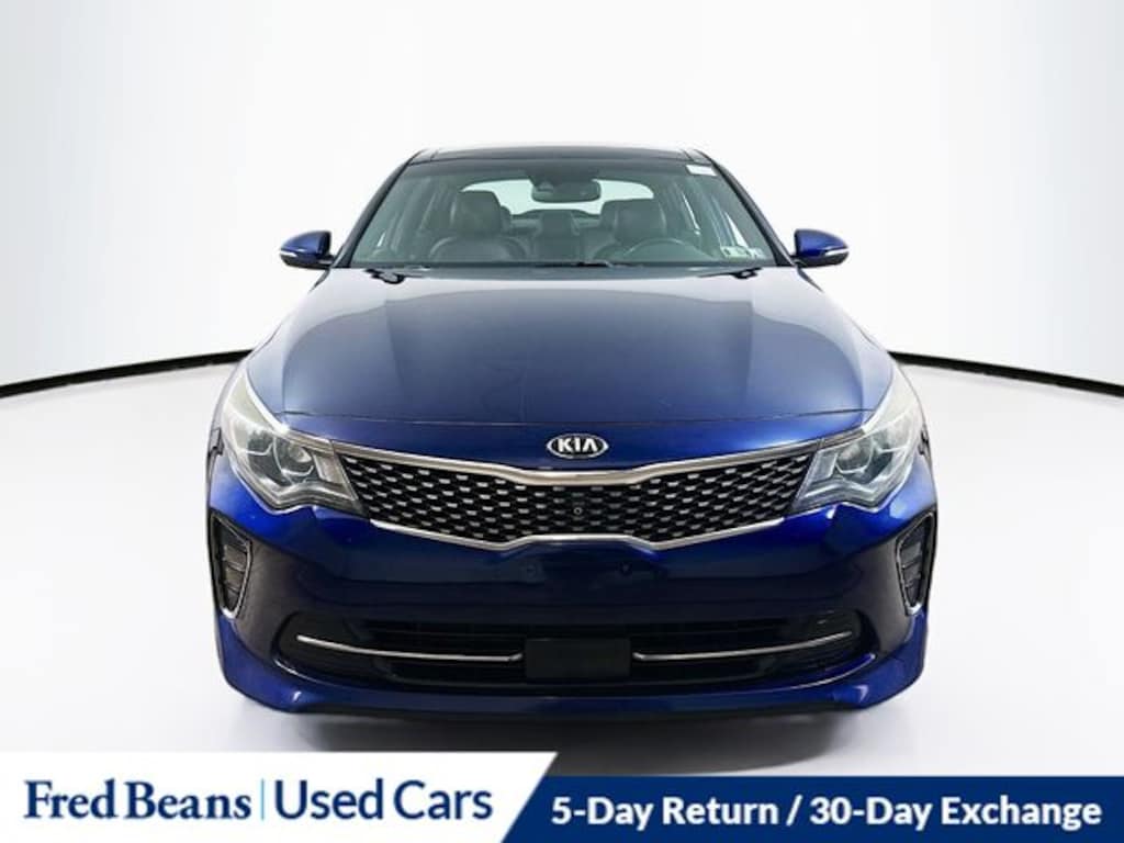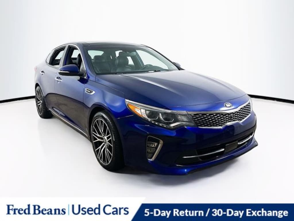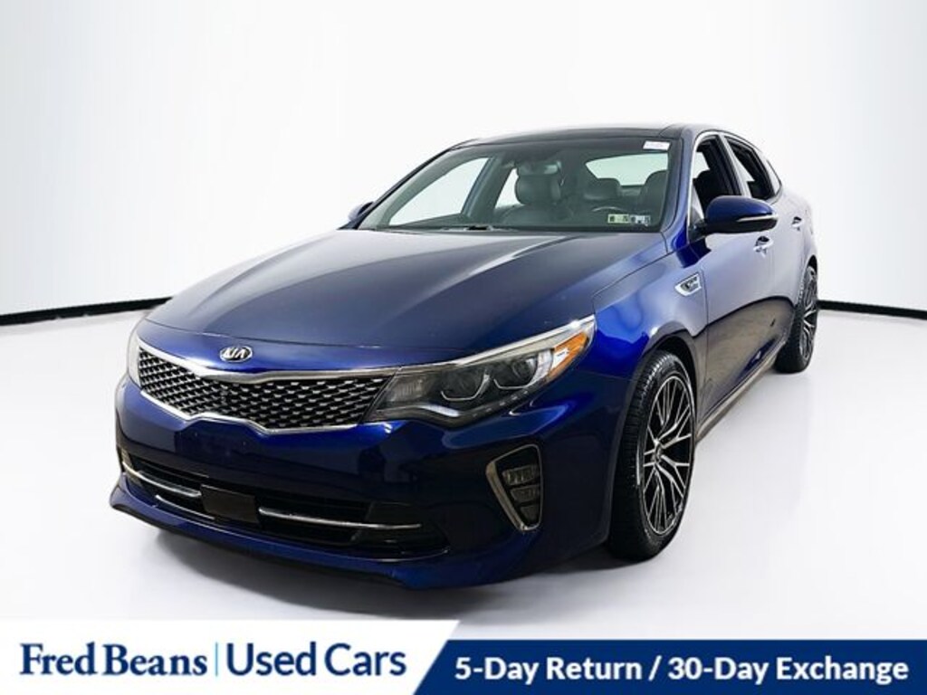 2018 Kia Optima SX Turbo 2.0L I4 DGI DOHC Turbocharged 6-Speed Automatic with Sportmatic FWD 4D Sedan Horizon Blue Black Leather, 4-Wheel Disc Brakes, 6 Speakers, ABS brakes, Advanced Smart Cruise Control, Air Conditioning, Alloy wheels, AM/FM radio: SiriusXM, Anti-whiplash front head restraints, Apple CarPlay & Android Auto, Auto-dimming Rear-View mirror, Automatic temperature control, Autonomous Emergency Braking (AEB), Brake assist, Bumpers: body-color, Cargo Mat, Chrome Accent Front/Rear Bumpers, Chrome Accent Side Sills, Delay-off headlights, Driver door bin, Driver vanity mirror, Dual front impact airbags, Dual front side impact airbags, Electronic Parking Brake, Electronic Stability Control, Emergency communication system, Exterior Parking Camera Rear, Four wheel independent suspension, Front anti-roll bar, Front Bucket Seats, Front Center Armrest, Front Collision Warning System, Front dual zone A/C, Front fog lights, Front reading lights, Fully automatic headlights, Heated & Ventilated Front Bucket Seats, Heated door mirrors, Heated front seats, Heated Leather-Wrapped D-Shaped Steering Wheel, Heated Rear Outboard Seats, High Beam Assist, Illuminated entry, Knee airbag, Lane Departure Warning System, Leather Seat Trim, Leather Shift Knob, Leather steering wheel, Limited Package (Black), Low tire pressure warning, Memory seat, Nappa Leather Seat Trim, Navigation System, Occupant sensing airbag, Outside temperature display, Overhead airbag, Overhead console, Panic alarm, Passenger door bin, Passenger vanity mirror, Power door mirrors, Power driver seat, Power moonroof, Power passenger seat, Power steering, Power windows, Premium Black Suede Headliner & Pillar Covers, Radio data system, Radio: AM/FM/MP3/SiriusXM Audio System, Radio: AM/FM/MP3/SiriusXM Premium Audio System, Rear anti-roll bar, Rear Parking Sensors, Rear reading lights, Rear seat center armrest, Rear Side Window Sun Shades, Rear window defroster, Remote keyless entry, Security system, Speed control, Speed-sensing steering, Split folding rear seat, Spoiler, Sport steering wheel, Steering wheel mounted audio controls, Surround View Monitor, Tachometer, Technology Package, Telescoping steering wheel, Tilt steering wheel, Traction control, Trip computer, Turn signal indicator mirrors, Variably intermittent wipers, Ventilated front seats, Wheels: 7.5J x 18" Alloy w/Chrome Machine Finish, Wheels: 7.5J x 18" Alloy w/Machine Finish, Black Leather.