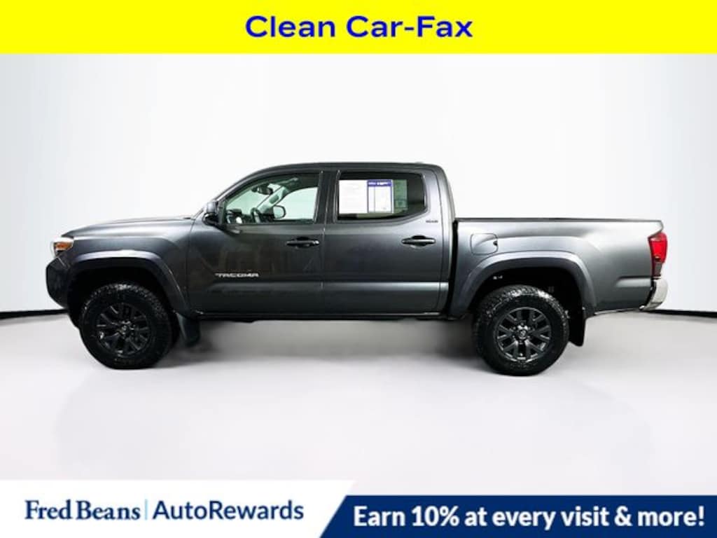 The exterior of this Tacoma is finished in a sleek Gray color, complemented by stylish body-color bumpers and color-keyed overfenders. Inside, you'll find a well-appointed cabin with features like Apple CarPlay/Android Auto, auto-dimming rearview mirror, and a power sliding rear window with privacy glass.