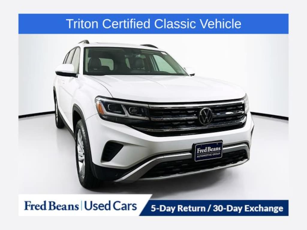 2023 Volkswagen Atlas 3.6L V6 SE w/Technology 3.6L VR6 8-Speed Automatic with Tiptronic AWD 4D Sport Utility White Triton Certified Classic Vehicle, 3 Month / 4,000 Mile Comprehensive Warranty.